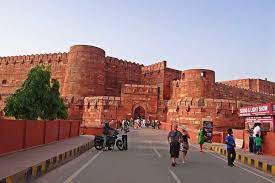 Agra Fort: Agra Fort is located, about 2.5 km north-west of the Taj Mahal. It served as the royal residence of Mughals for generations, the fort was the battle site during the Indian rebellion of 1857. The fort has a semicircular plan, its chord lies parallel to the river while its walls are seventy feet high. Double ramparts have massive circular bastions at intervals, with battlements, embrasures, and string courses.Four gates were provided on its four sides, one of them, Khizri gate opens to the river. The Delhi gate is not accessible to the public.